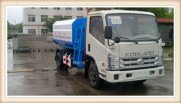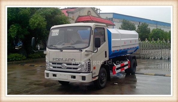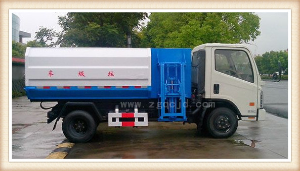 專用功能說明: 產品介紹:自裝卸式垃圾車又稱掛桶式垃圾車,是一種與裝垃圾的鐵桶、塑料桶配套使用的環衛專用車輛,可以一車配多個垃圾桶,降低了配備成本,增加了收集管理空間,主要用于環衛部門、社區進行生活垃圾收集,大型工礦企業垃圾清運等。?xml:namespace> 組成部分:國內知名品牌東風福瑞卡原裝底盤(全國聯保)、箱體裝置(密封式)、取力器、多路換向閥、自裝料裝置、液壓系統、操作系統等組成。 箱體裝置:為密封式結構,在箱體前部設有進料箱蓋,側面設有自裝料裝置,箱體后部設有卸料門。 自裝料裝置:自裝料裝置設在箱體的前部側面,由支架、油缸、鏈條結構、吊鉤等組成。此裝置可將外部垃圾桶內的垃圾提升裝入箱體內。 液壓系統:由油箱、油泵、多路換向閥、液壓缸、濾油器和管路組成,該系統能實現裝卸垃圾的各種專用功能。 操作系統:通過該系統可以實現各功能的轉換。通過操縱多路換向閥的手柄可完成裝料和卸料工作。(在操作多路換向閥時應掛上取力器帶動油泵工作) 主要特點:垃圾收集方式簡便、高效、環保性好(不產生二次污染),質量可靠,故障率低,維護方便,運行費用低等特點。廣泛適用于適用于市政環衛、市政、廠礦企業、物業小區、垃圾多而集中的居民區、城市街道垃圾處理。