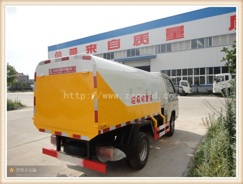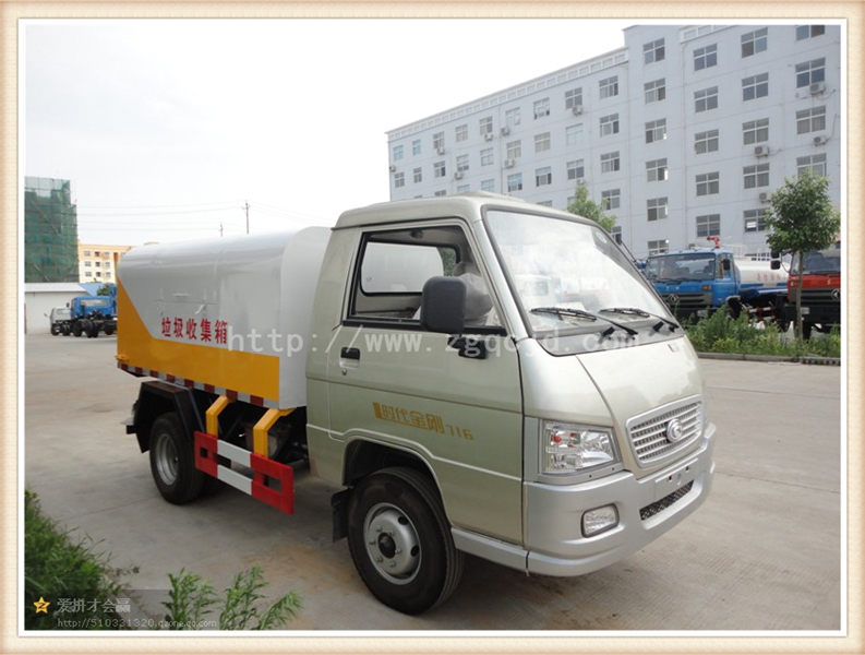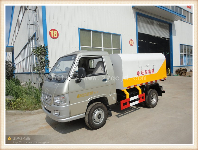 車輛性能: 產品介紹:自裝卸式垃圾車又稱掛桶式垃圾車,是一種與裝垃圾的鐵桶、塑料桶配套使用的環衛專用車輛,可以一車配多個垃圾桶,降低了配備成本,增加了收集管理空間,主要用于環衛部門、社區進行生活垃圾收集,大型工礦企業垃圾清運等。?xml:namespace> 組成部分:國內知名品牌東風福瑞卡原裝底盤(全國聯保)、箱體裝置(密封式)、取力器、多路換向閥、自裝料裝置、液壓系統、操作系統等組成。 箱體裝置:為密封式結構,在箱體前部設有進料箱蓋,側面設有自裝料裝置,箱體后部設有卸料門。 自裝料裝置:自裝料裝置設在箱體的前部側面,由支架、油缸、鏈條結構、吊鉤等組成。此裝置可將外部垃圾桶內的垃圾提升裝入箱體內。 液壓系統:由油箱、油泵、多路換向閥、液壓缸、濾油器和管路組成,該系統能實現裝卸垃圾的各種專用功能。 操作系統:通過該系統可以實現各功能的轉換。通過操縱多路換向閥的手柄可完成裝料和卸料工作。(在操作多路換向閥時應掛上取力器帶動油泵工作) 主要特點:垃圾收集方式簡便、高效、環保性好(不產生二次污染),質量可靠,故障率低,維護方便,運行費用低等特點。廣泛適用于適用于市政環衛、市政、廠礦企業、物業小區、垃圾多而集中的居民區、城市街道垃圾處理。