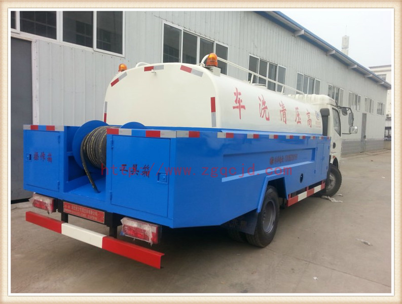 高壓清洗車性能介紹: 組成部分:主要由東風多利卡原裝底盤(全國聯保)、水罐、水路系統、液壓系統、卷管器、沖洗管道、高壓噴頭等組成。 水路系統:包括水罐、高壓水泵(意大利進口泵)、進水管、泄水截止閥、濾水器、水位表、進水截止閥、水壓表、壓力表開關、高壓噴頭、高壓三通閥、卷筒。 液壓系統:包括油位計、油箱、過濾器、閘閥、油泵、溢流閥、節流閥、油壓表、單向閥、油馬達、換向閥、單向閥、開關。 選裝:可加裝灑水裝置,安裝綠化灑水炮、前沖、后灑、側噴,可進行綠化灑水、噴霧、壓塵、高壓沖洗路面,還可加裝吸污功能,集清洗、吸污于一體。 產品特點:具有壓力高、節約水、作業時間長、清洗效果好的特點。 工作范圍:主要用于清洗城市下水道的沉積物,疏通下水道。也可用于清洗工業排液管道、壁面等,并可兼作灑水、運水和沖洗公路用,緊急時可用于救火。