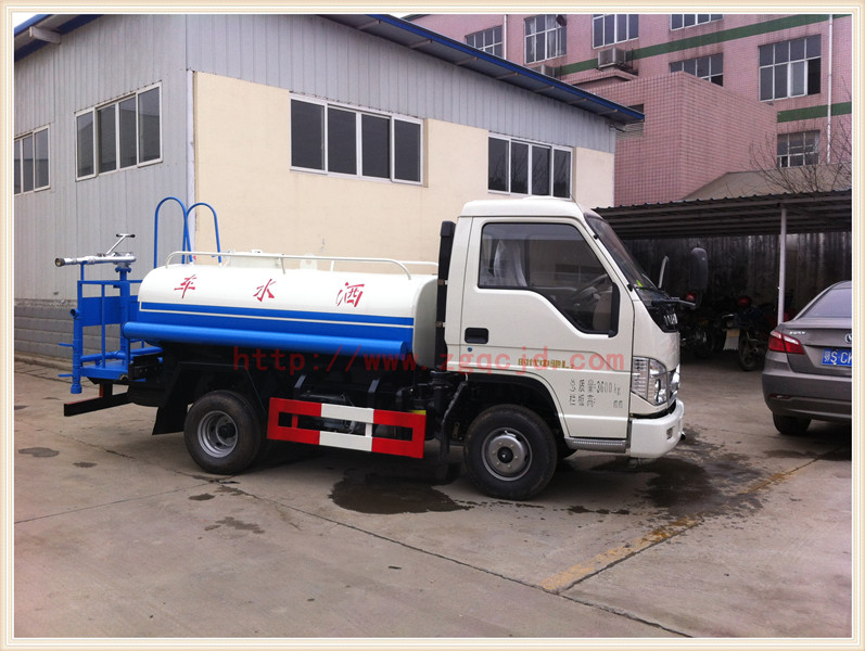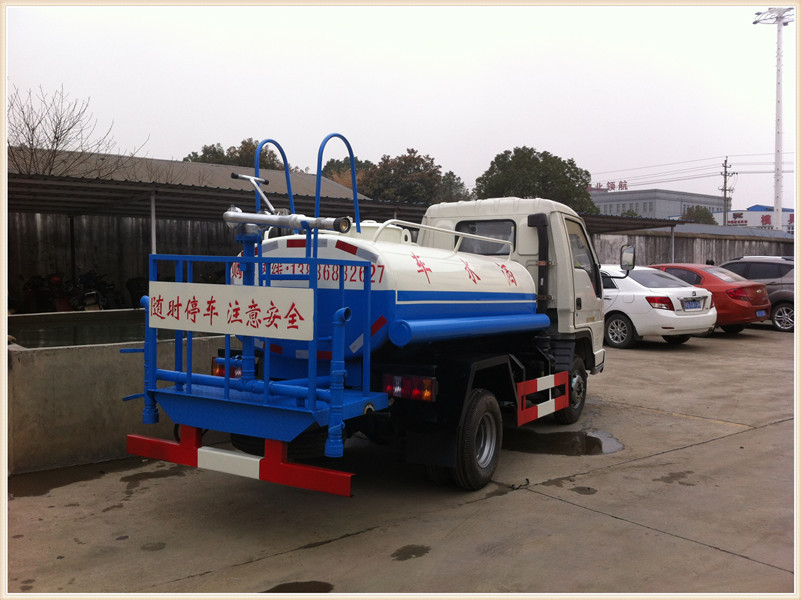 該車主要配置如下:采用福田原裝底盤,配全柴68匹馬力發動機,6.00-13輪胎;采用武鋼優質碳鋼,罐體有效容積2立方米,灑水車前沖、后灑、側噴、帶作業平臺及灑水高炮,并配兩根3米吸水管,滿足不同位置和區域吸水作業。